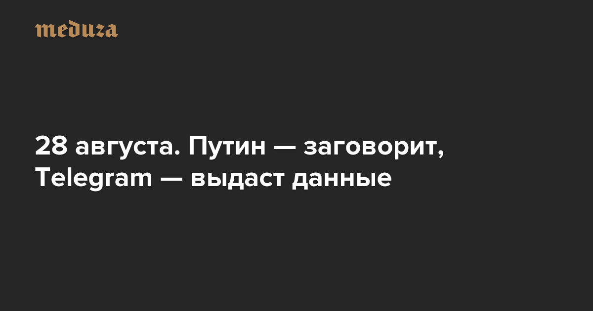 Вечерняя Медуза 28 августа. Путин — заговорит, Telegram — выдаст данные