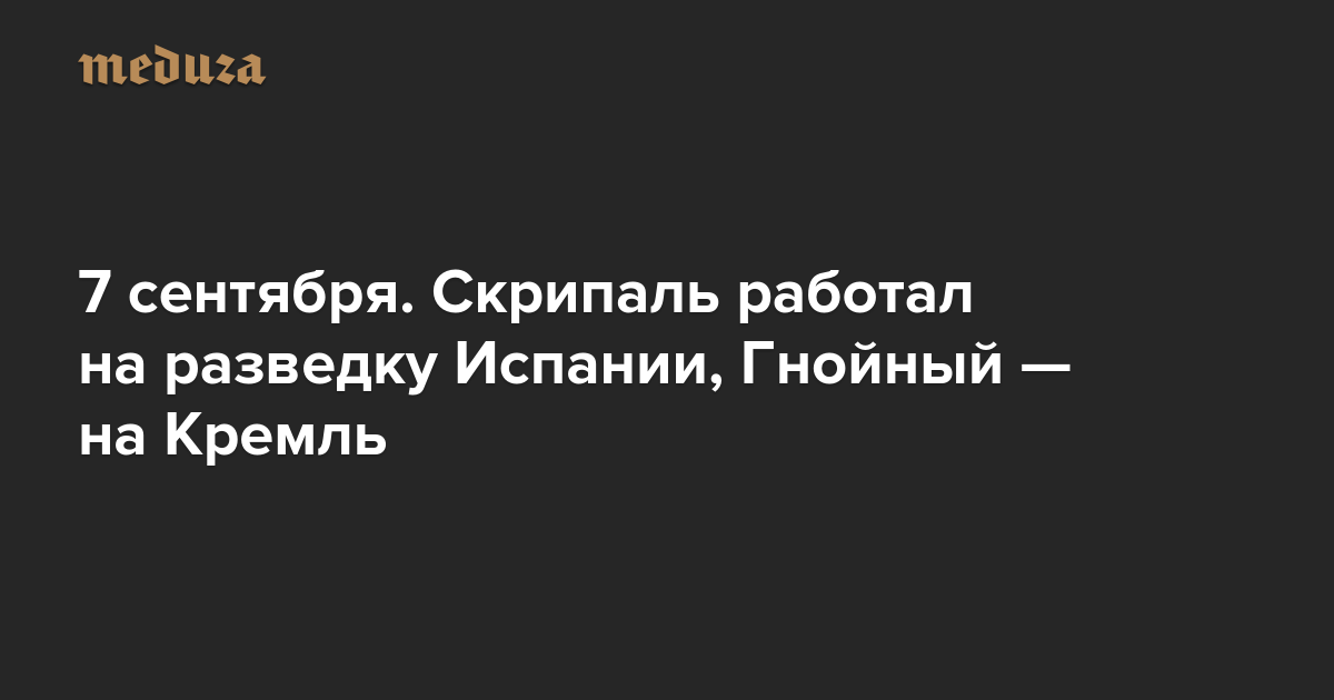 Вечерняя Медуза 7 сентября. Скрипаль работал на разведку Испании, Гнойный — на Кремль