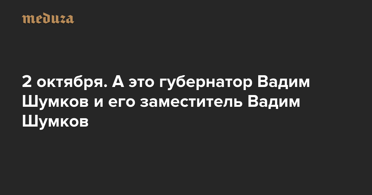 Вечерняя Медуза 2 октября. А это губернатор Вадим Шумков и его заместитель Вадим Шумков