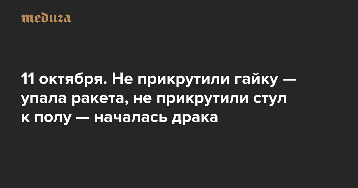 Вечерняя Медуза 11 октября. Не прикрутили гайку — упала ракета, не прикрутили стул к полу — началась драка
