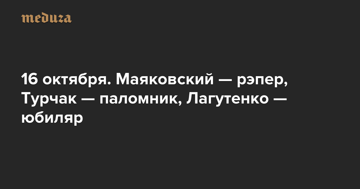 Вечерняя Медуза 16 октября. Маяковский — рэпер, Турчак — паломник, Лагутенко — юбиляр