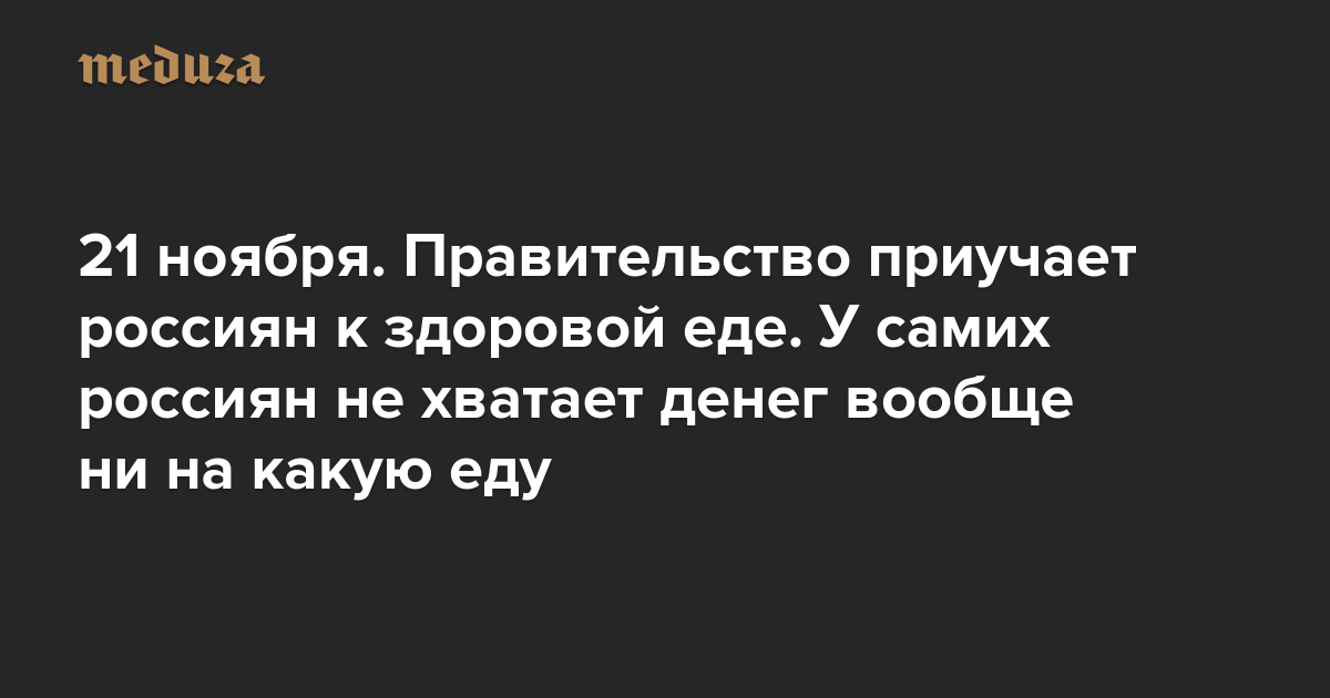 Вечерняя Медуза 21 ноября. Правительство приучает россиян к здоровой еде. У самих россиян не хватает денег вообще ни на какую еду