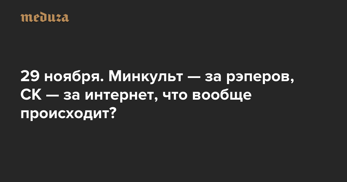 Вечерняя Медуза 29 ноября. Минкульт — за рэперов, СК — за интернет, что вообще происходит?