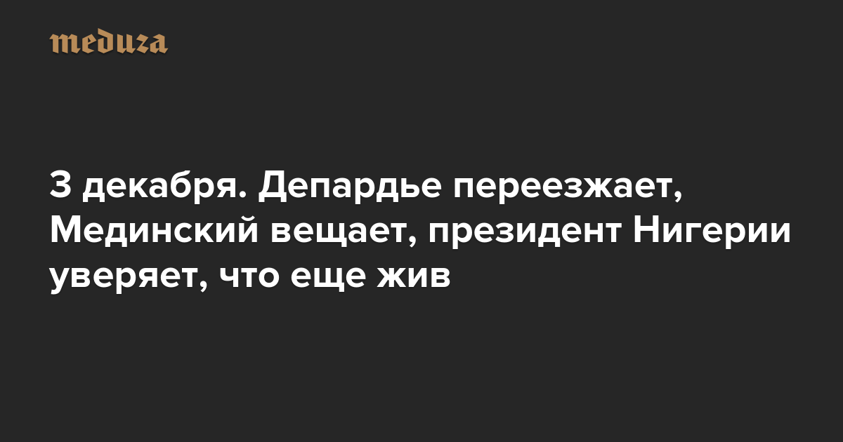 Вечерняя Медуза 3 декабря. Депардье переезжает, Мединский вещает, президент Нигерии уверяет, что еще жив