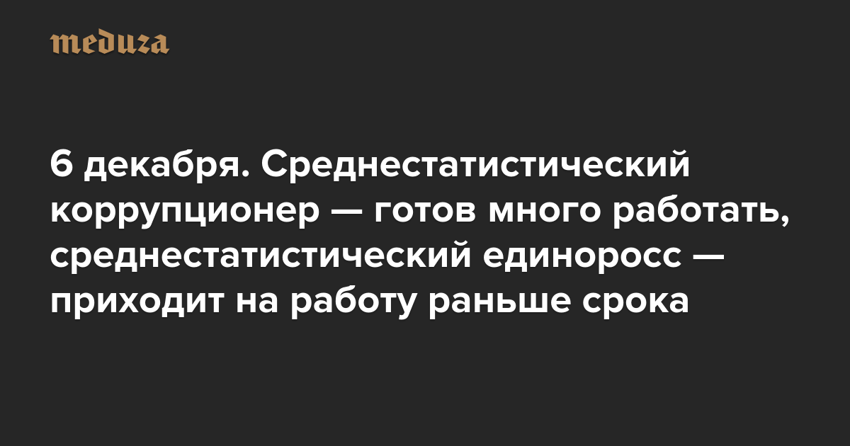 Вечерняя Медуза 6 декабря. Среднестатистический коррупционер — готов много работать, среднестатистический единоросс — приходит на работу раньше срока