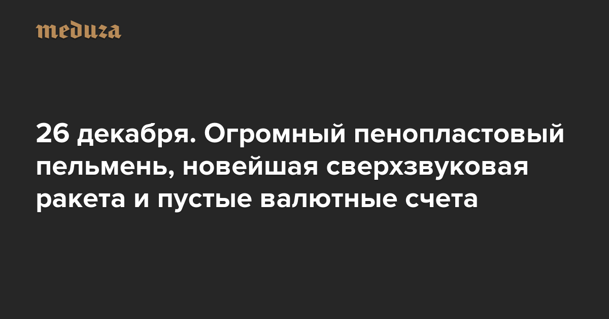 Вечерняя Медуза 26 декабря. Огромный пенопластовый пельмень, новейшая сверхзвуковая ракета и пустые валютные счета