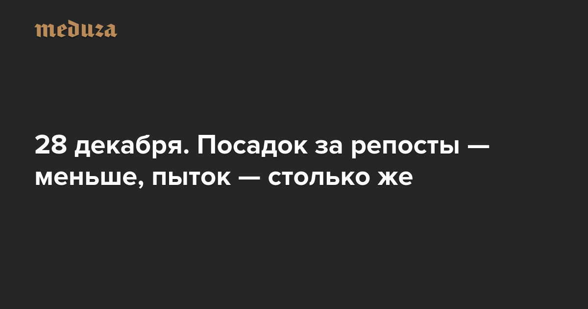 Вечерняя Медуза 28 декабря. Посадок за репосты — меньше, пыток — столько же