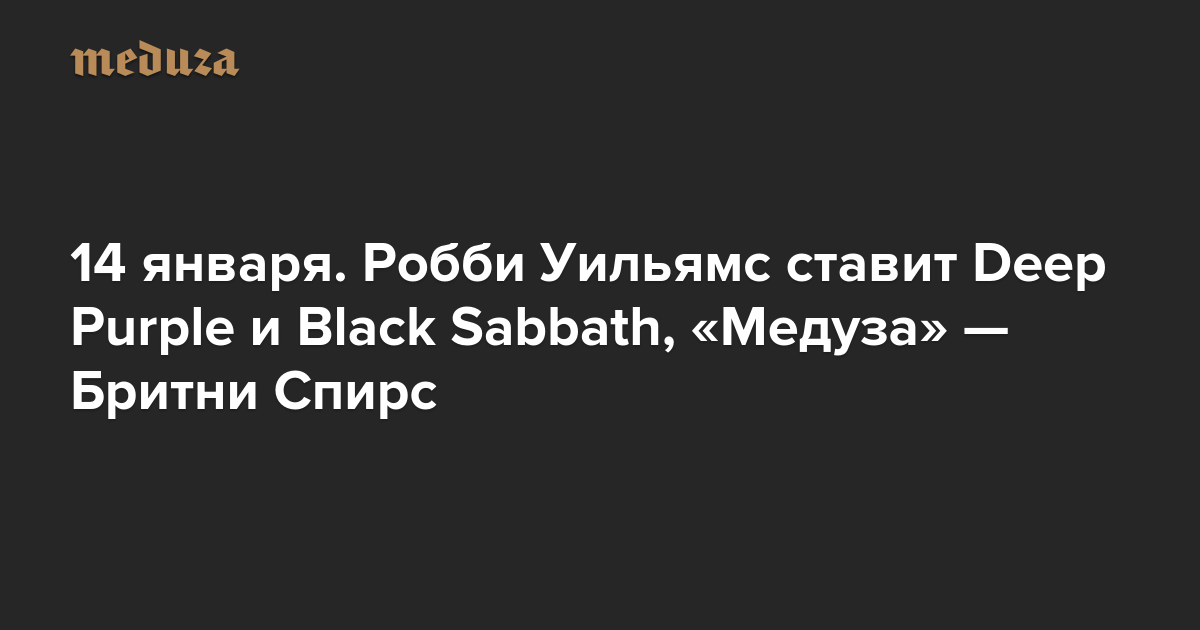 Вечерняя Медуза 14 января. Робби Уильямс ставит Deep Purple и Black Sabbath, «Медуза» — Бритни Спирс