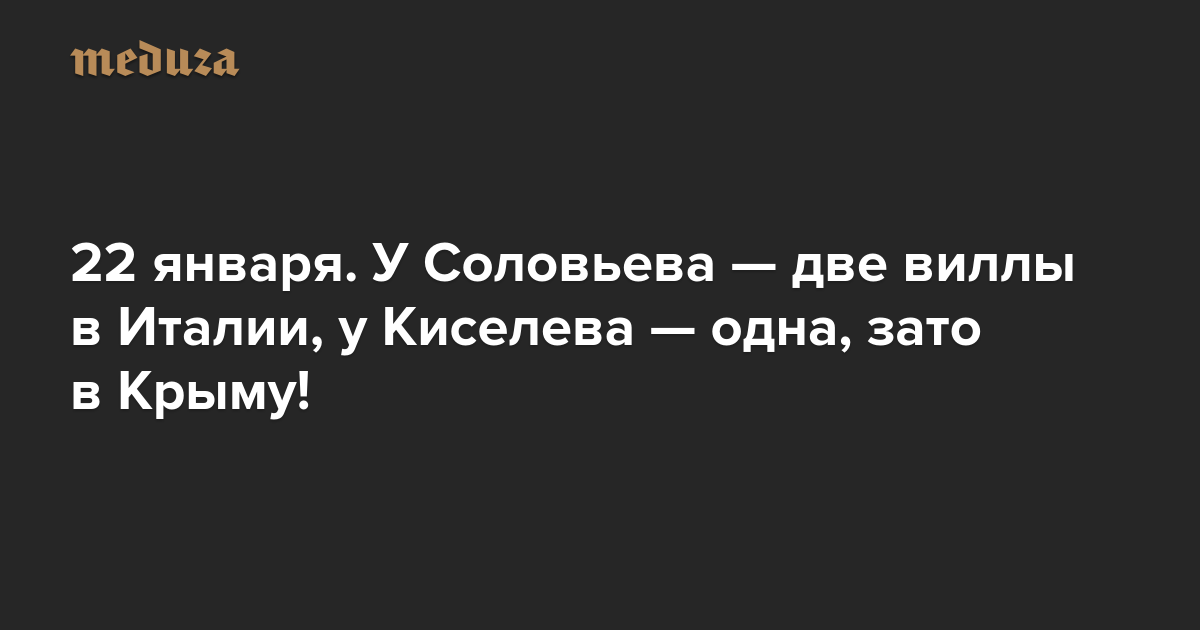 Вечерняя Медуза 22 января. У Соловьева — две виллы в Италии, у Киселева — одна, зато в Крыму!