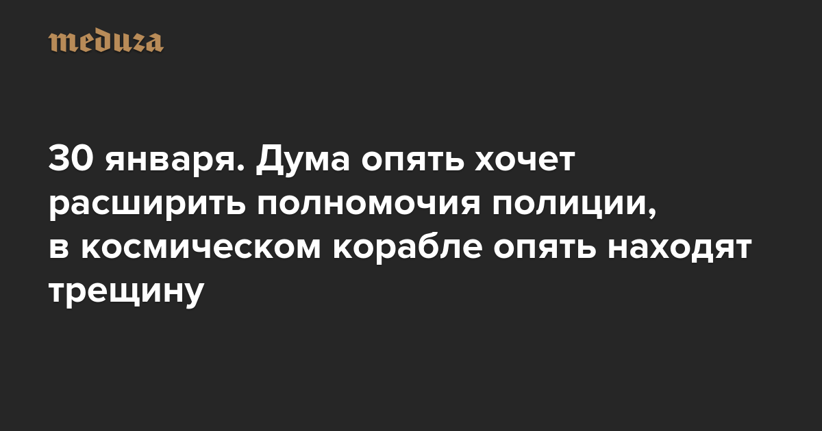 Вечерняя Медуза 30 января. Дума опять хочет расширить полномочия полиции, в космическом корабле опять находят трещину