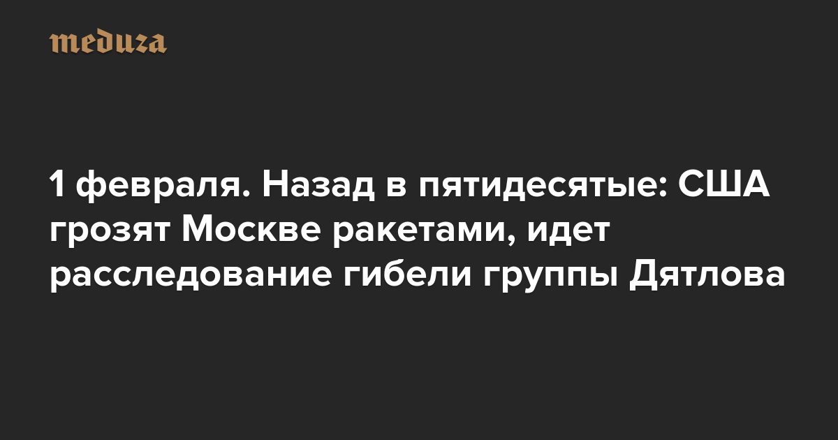 Вечерняя Медуза 1 февраля. Назад в пятидесятые: США грозят Москве ракетами, идет расследование гибели группы Дятлова