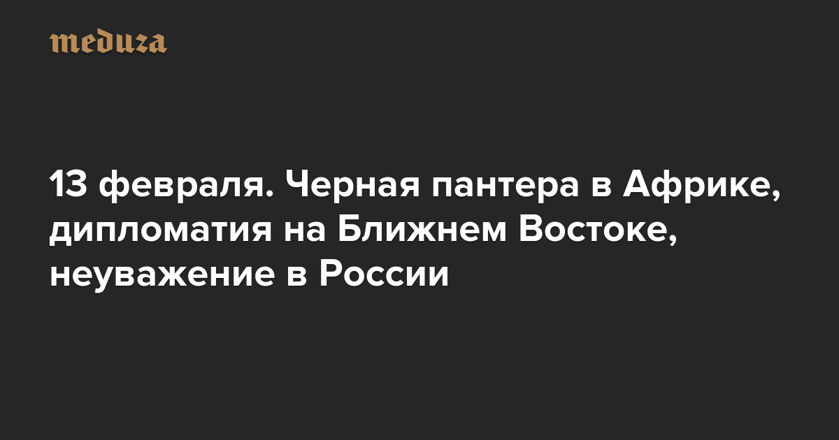 Вечерняя Медуза 13 февраля. Черная пантера в Африке, дипломатия на Ближнем Востоке, неуважение в России