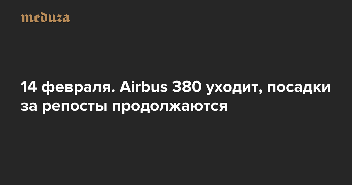 Вечерняя Медуза 14 февраля. Airbus 380 уходит, посадки за репосты продолжаются