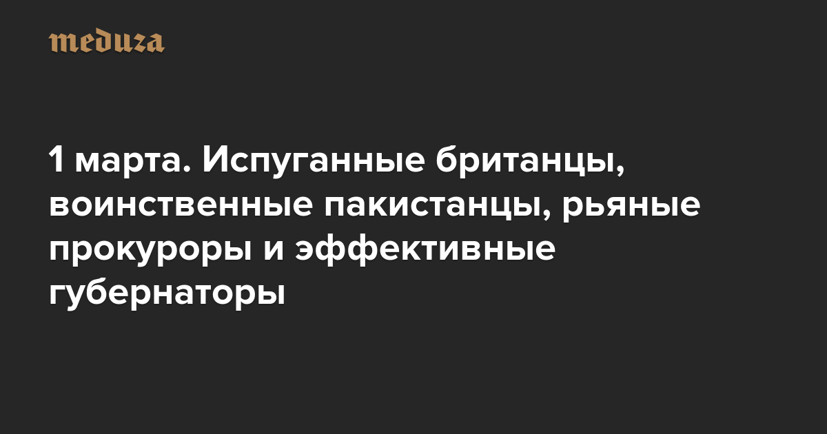 Вечерняя Медуза 1 марта. Испуганные британцы, воинственные пакистанцы, рьяные прокуроры и эффективные губернаторы