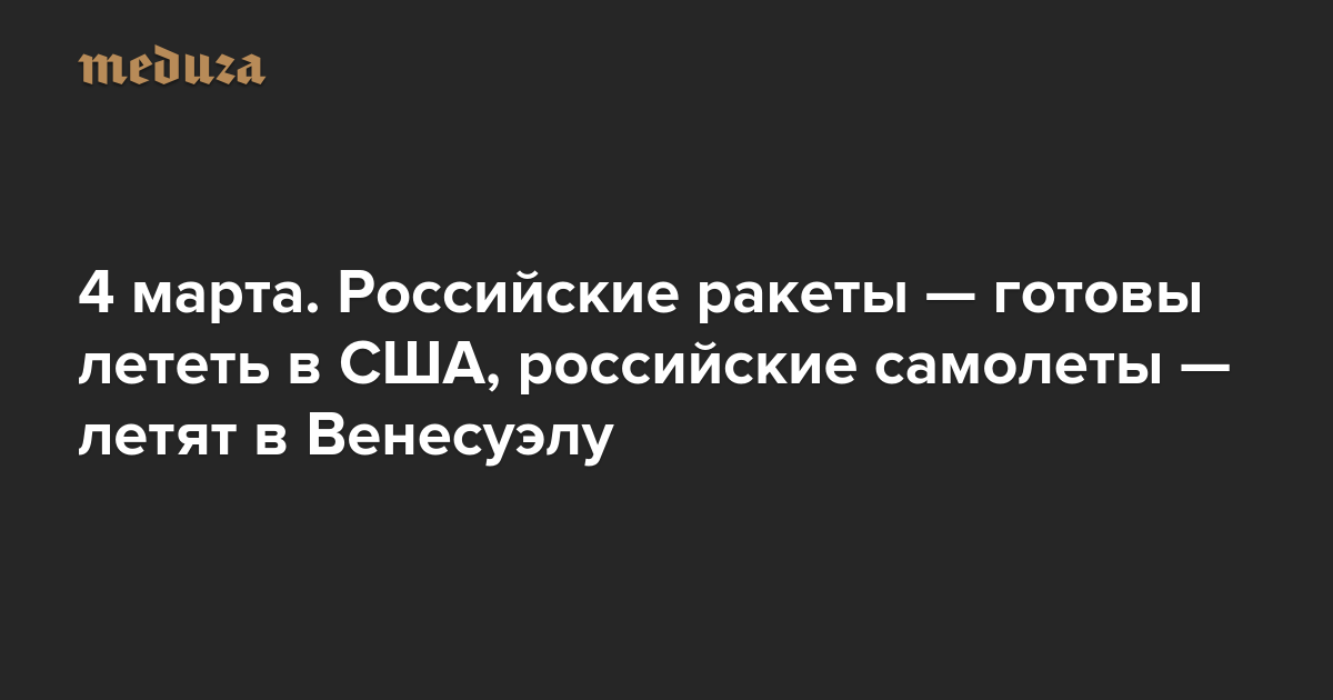 Вечерняя Медуза 4 марта. Российские ракеты — готовы лететь в США, российские самолеты — летят в Венесуэлу
