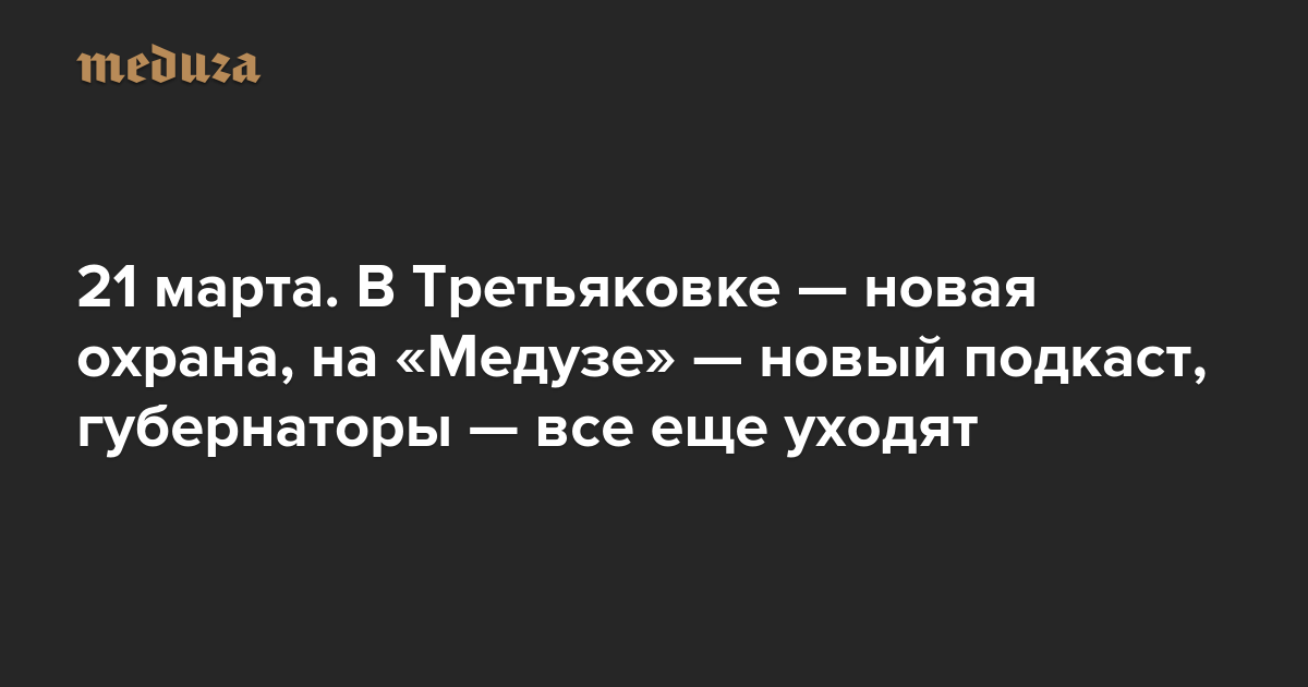 Вечерняя Медуза 21 марта. В Третьяковке — новая охрана, на «Медузе» — новый подкаст, губернаторы — все еще уходят