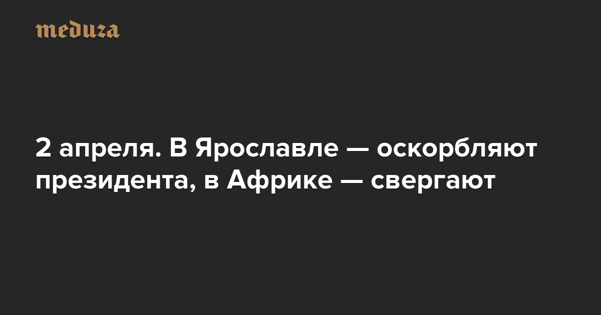 Вечерняя Медуза 2 апреля. В Ярославле — оскорбляют президента, в Африке — свергают