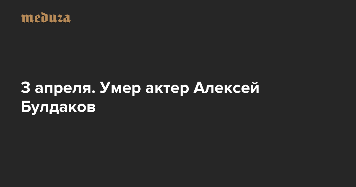 Вечерняя Медуза 3 апреля. Умер актер Алексей Булдаков