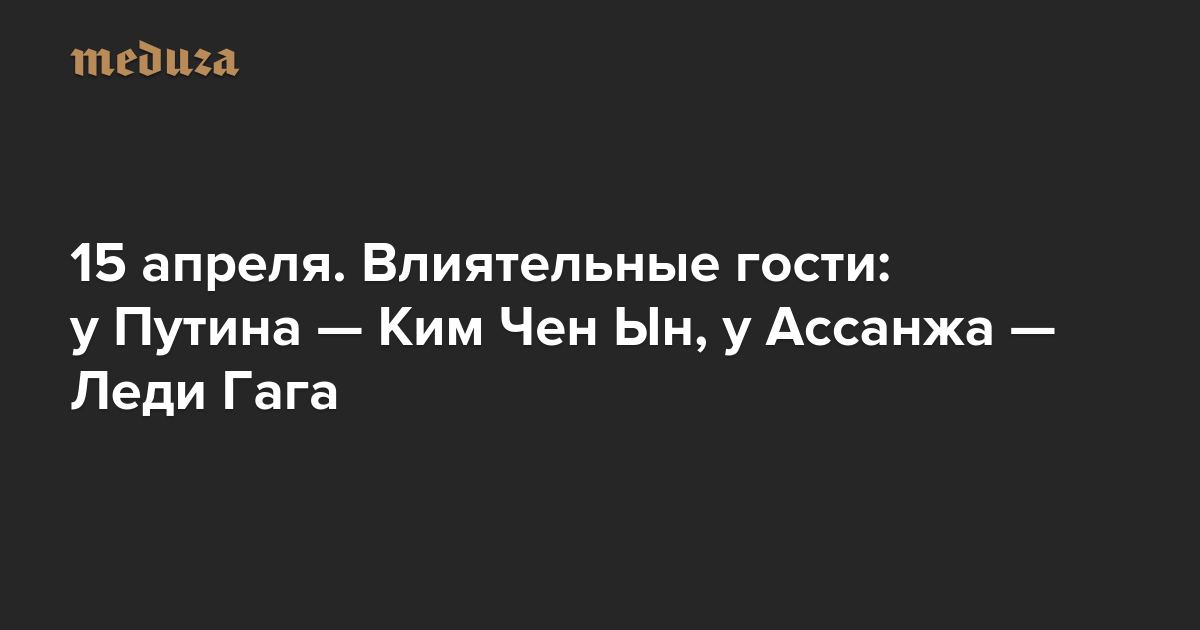 Вечерняя Медуза 15 апреля. Влиятельные гости: у Путина — Ким Чен Ын, у Ассанжа — Леди Гага