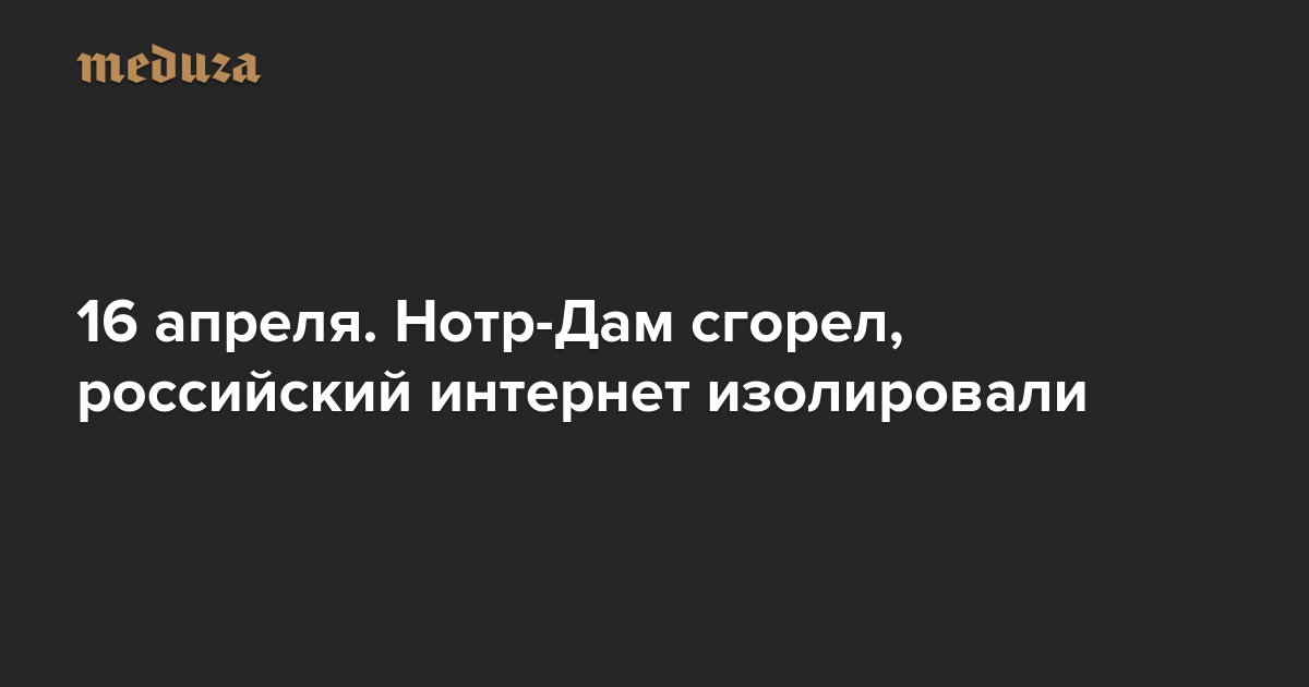 Вечерняя Медуза 16 апреля. Нотр-Дам сгорел, российский интернет изолировали
