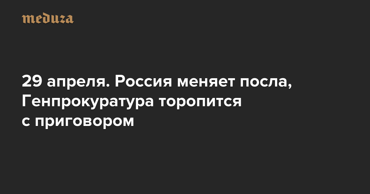 Вечерняя Медуза 29 апреля. Россия меняет посла, Генпрокуратура торопится с приговором