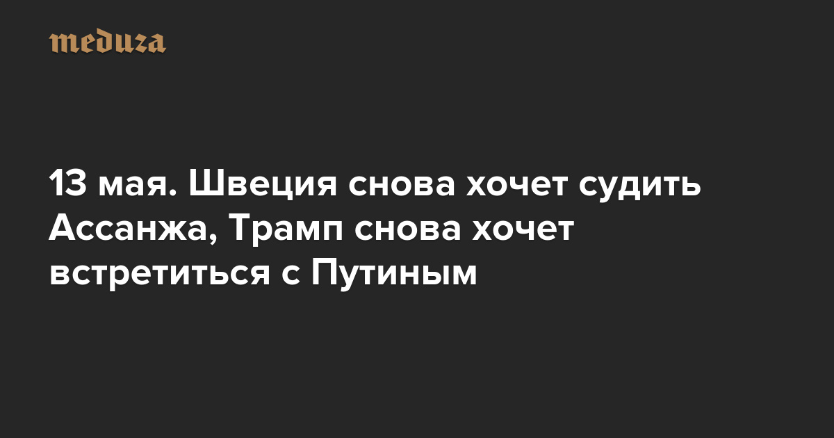 Вечерняя Медуза 13 мая. Швеция снова хочет судить Ассанжа, Трамп снова хочет встретиться с Путиным