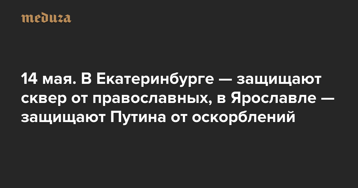 Вечерняя Медуза 14 мая. В Екатеринбурге — защищают сквер от православных, в Ярославле — защищают Путина от оскорблений