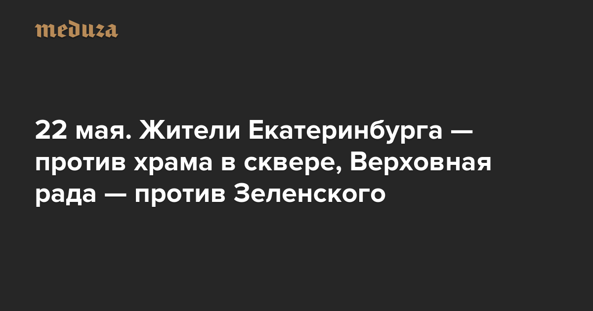 Вечерняя Медуза 22 мая. Жители Екатеринбурга — против храма в сквере, Верховная рада — против Зеленского