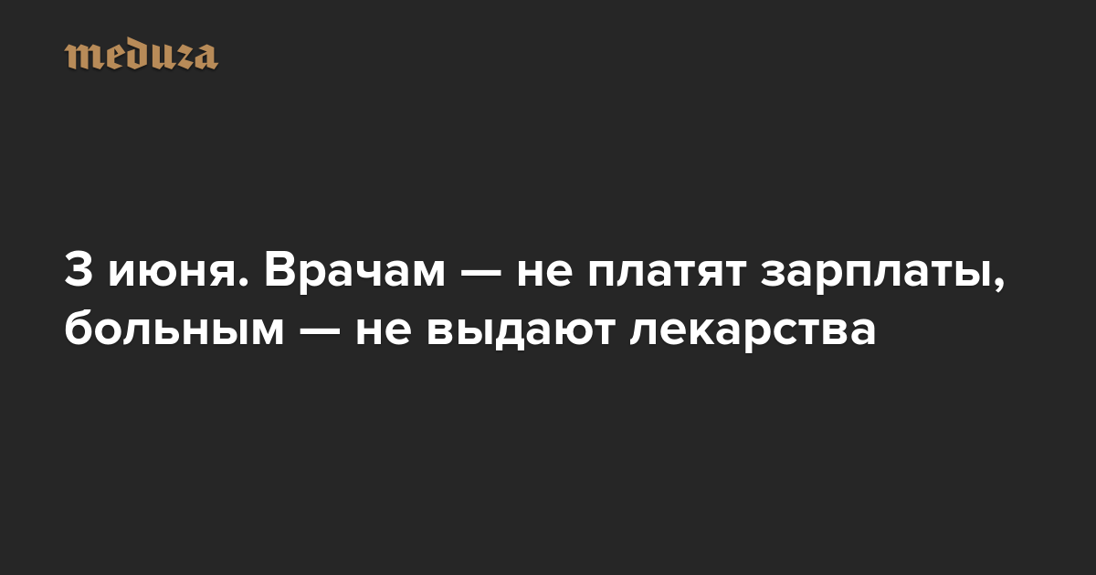 Вечерняя Медуза 3 июня. Врачам — не платят зарплаты, больным — не выдают лекарства