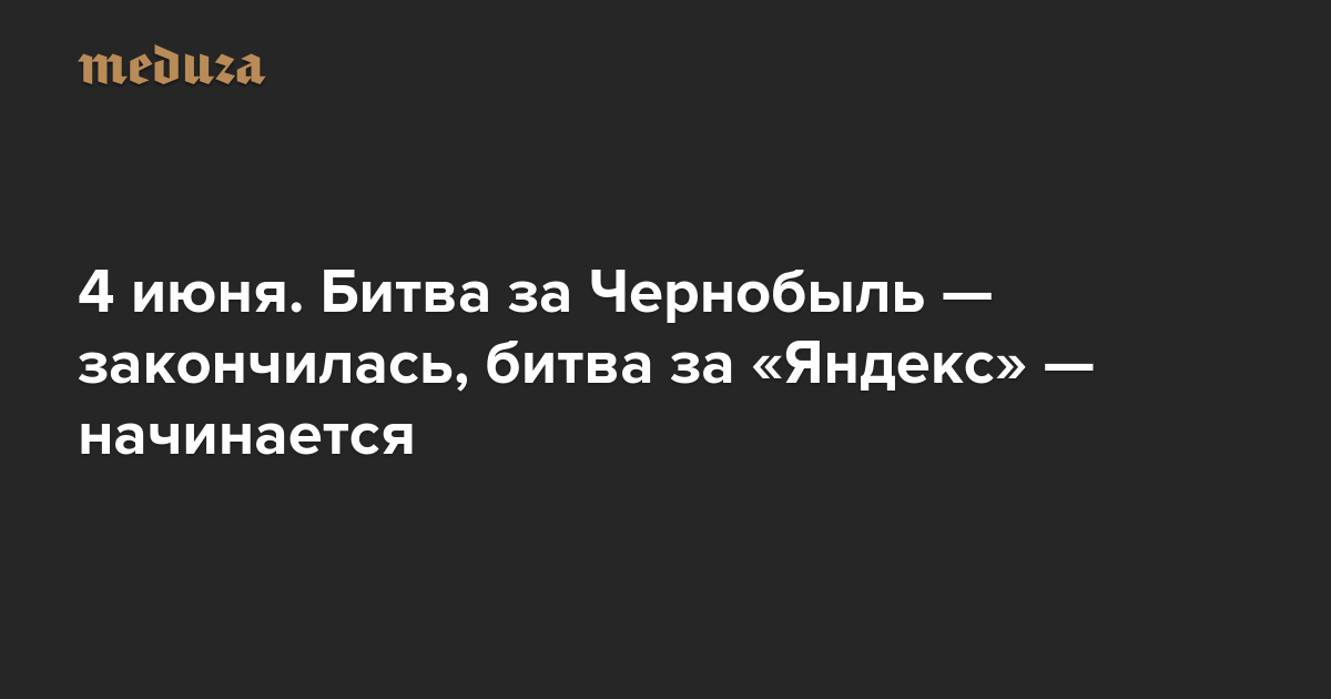 Вечерняя Медуза 4 июня. Битва за Чернобыль — закончилась, битва за «Яндекс» — начинается