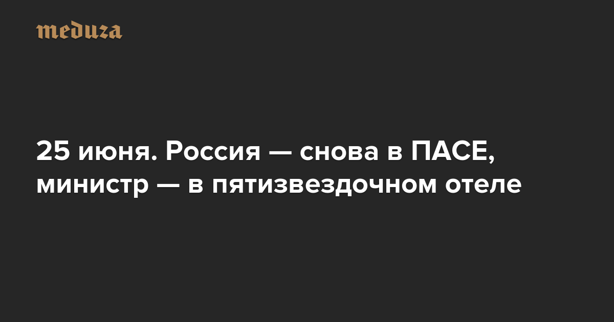 Вечерняя Медуза 25 июня. Россия — снова в ПАСЕ, министр — в пятизвездочном отеле