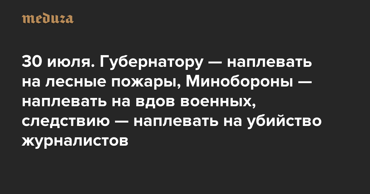 Вечерняя Медуза 30 июля. Губернатору — наплевать на лесные пожары, Минобороны — наплевать на вдов военных, следствию — наплевать на убийство журналистов