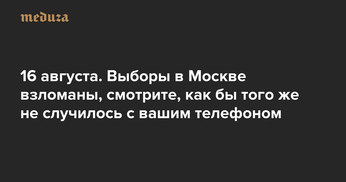 Вечерняя Медуза 16 августа. Выборы в Москве взломаны, смотрите, как бы того же не случилось с вашим телефоном