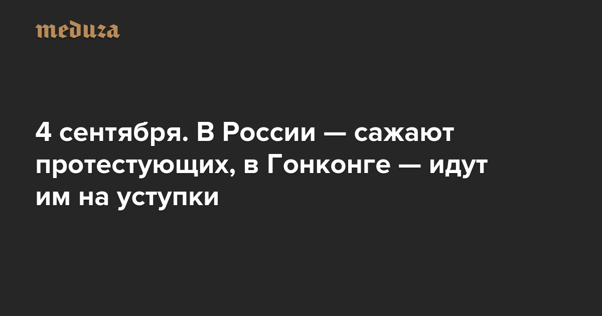 Вечерняя Медуза 4 сентября. В России — сажают протестующих, в Гонконге — идут им на уступки