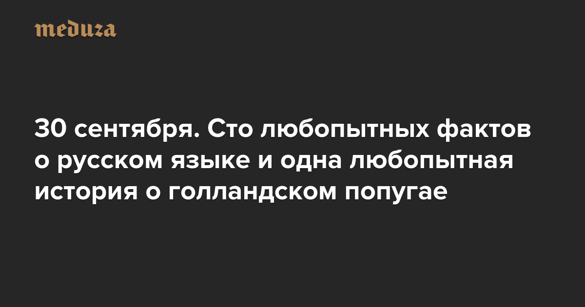 Вечерняя Медуза 30 сентября. Сто любопытных фактов о русском языке и одна любопытная история о голландском попугае
