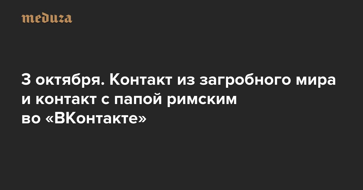 Вечерняя Медуза 3 октября. Контакт из загробного мира и контакт с папой римским во «ВКонтакте»