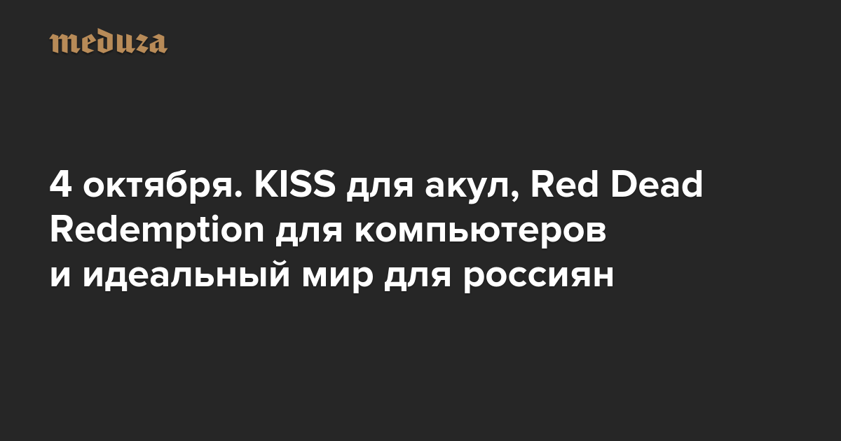 Вечерняя Медуза 4 октября. KISS для акул, Red Dead Redemption для компьютеров и идеальный мир для россиян