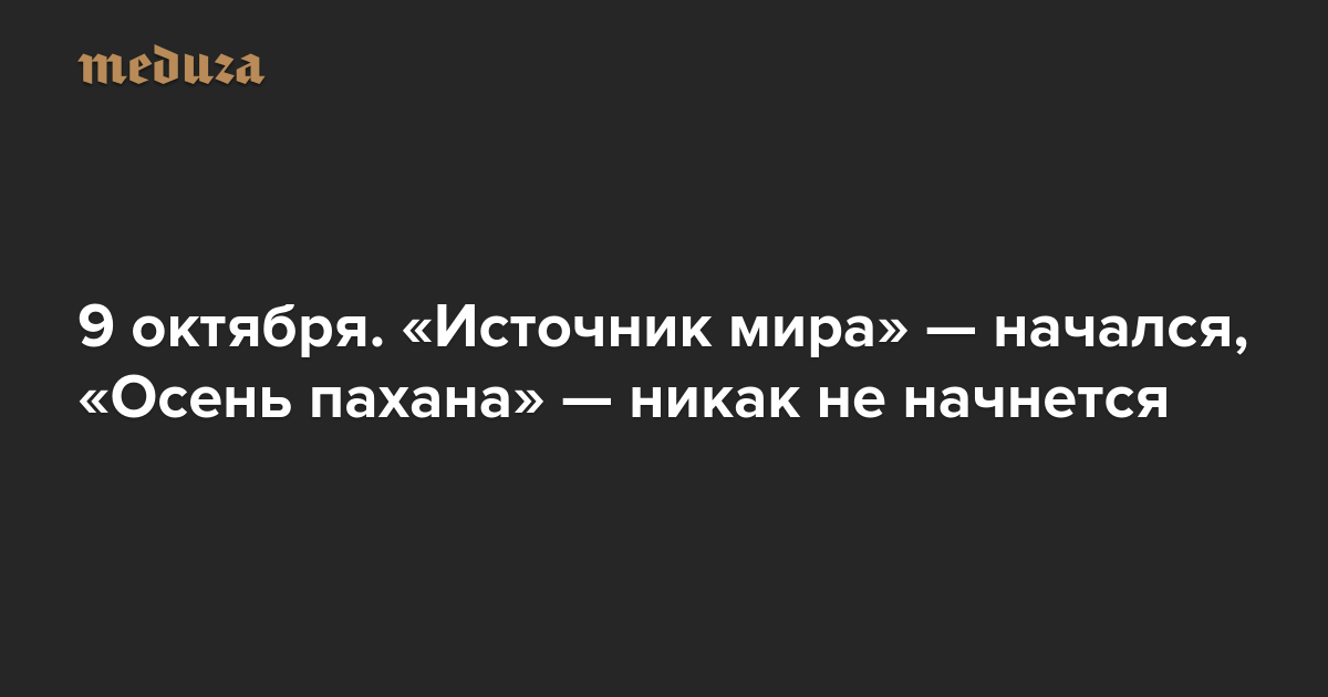 Вечерняя Медуза 9 октября. «Источник мира» — начался, «Осень пахана» — никак не начнется