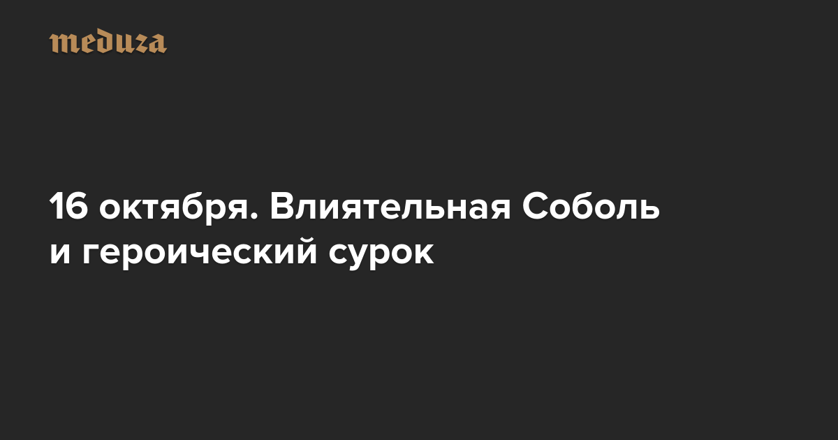 Вечерняя Медуза 16 октября. Влиятельная Соболь и героический сурок