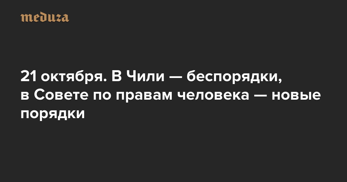 Вечерняя Медуза 21 октября. В Чили — беспорядки, в Совете по правам человека — новые порядки