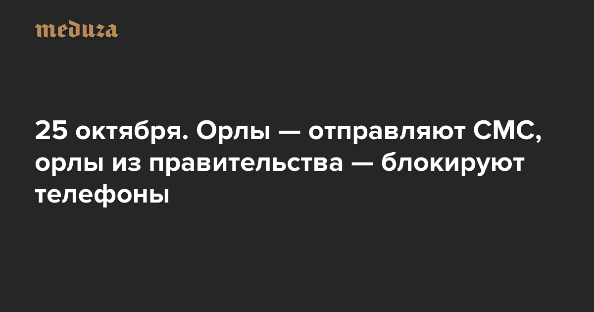 Вечерняя Медуза 25 октября. Орлы — отправляют СМС, орлы из правительства — блокируют телефоны