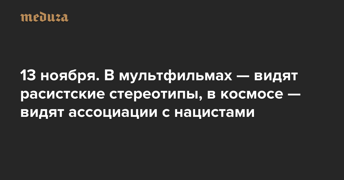 Вечерняя Медуза 13 ноября. В мультфильмах — видят расистские стереотипы, в космосе — видят ассоциации с нацистами