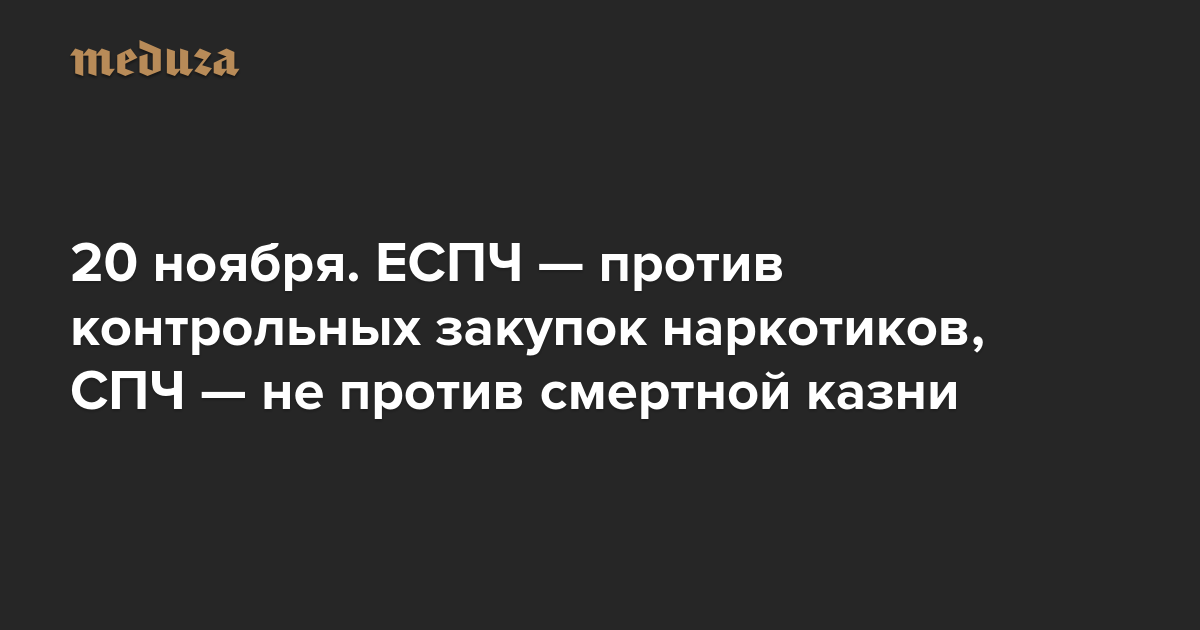 Вечерняя Медуза 20 ноября. ЕСПЧ — против контрольных закупок наркотиков, СПЧ — не против смертной казни