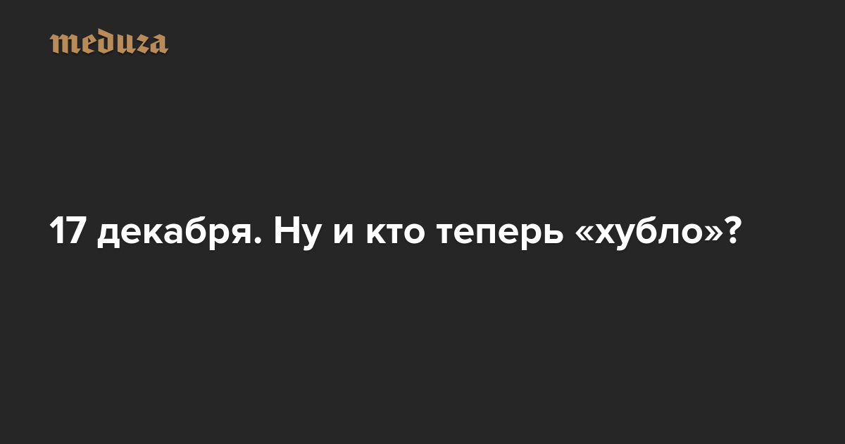 Вечерняя Медуза 17 декабря. Ну и кто теперь «хубло»?