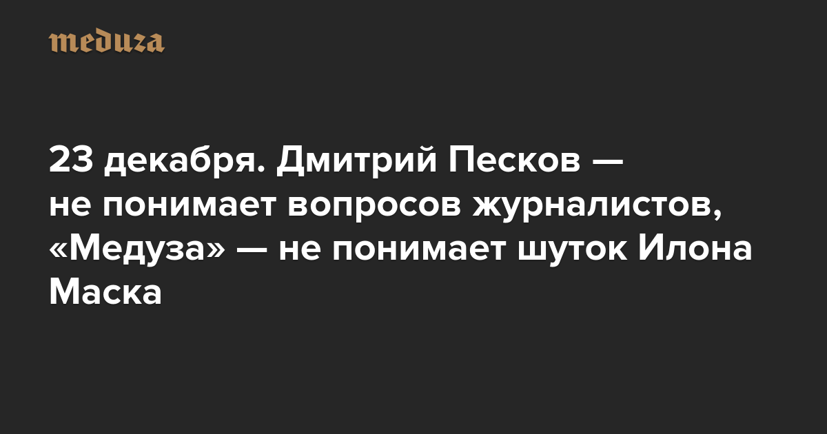 Вечерняя Медуза 23 декабря. Дмитрий Песков — не понимает вопросов журналистов, «Медуза» — не понимает шуток Илона Маска