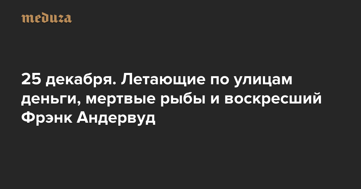 Вечерняя Медуза 25 декабря. Летающие по улицам деньги, мертвые рыбы и воскресший Фрэнк Андервуд