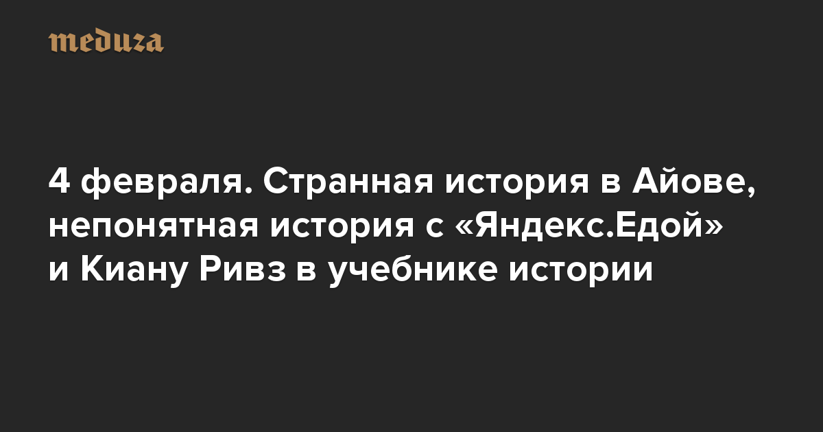 Вечерняя Медуза 4 февраля. Странная история в Айове, непонятная история с «Яндекс.Едой» и Киану Ривз в учебнике истории