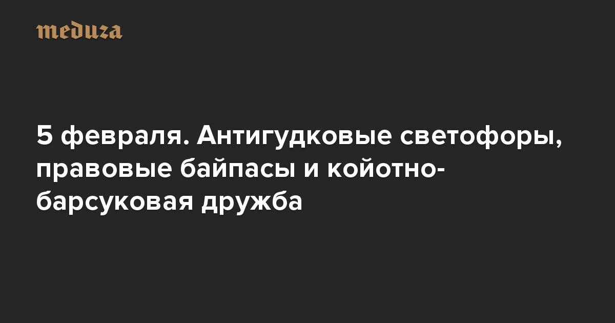 Вечерняя Медуза 5 февраля. Антигудковые светофоры, правовые байпасы и койотно-барсуковая дружба