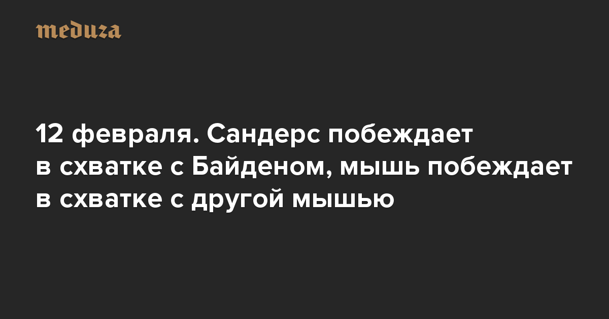 Вечерняя Медуза 12 февраля. Сандерс побеждает в схватке с Байденом, мышь побеждает в схватке с другой мышью