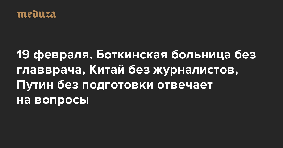 Вечерняя Медуза 19 февраля. Боткинская больница без главврача, Китай без журналистов, Путин без подготовки отвечает на вопросы